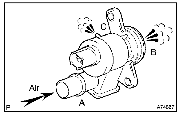 2. Blow air into the intake manifold side, and check that air passes through with difficulty. If the result is not as specified, replace the ventilation valve.