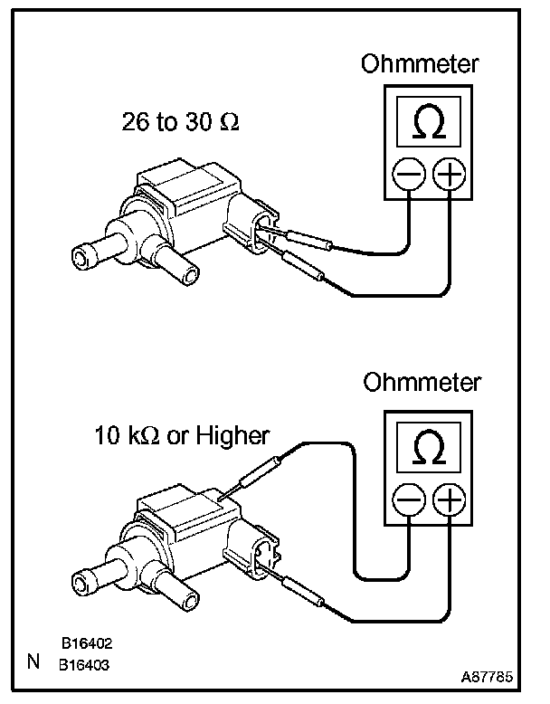 If the resistance is not as specified, replace the VSV assy.