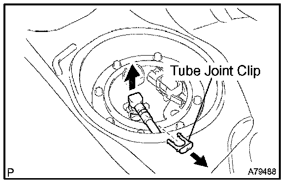 a. Remove the tube joint clip, and pull out the fuel pump tube.