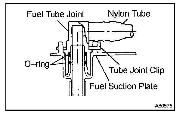 - After installing the tube joint clip, check that the fuel tube joint has not been pulled off.