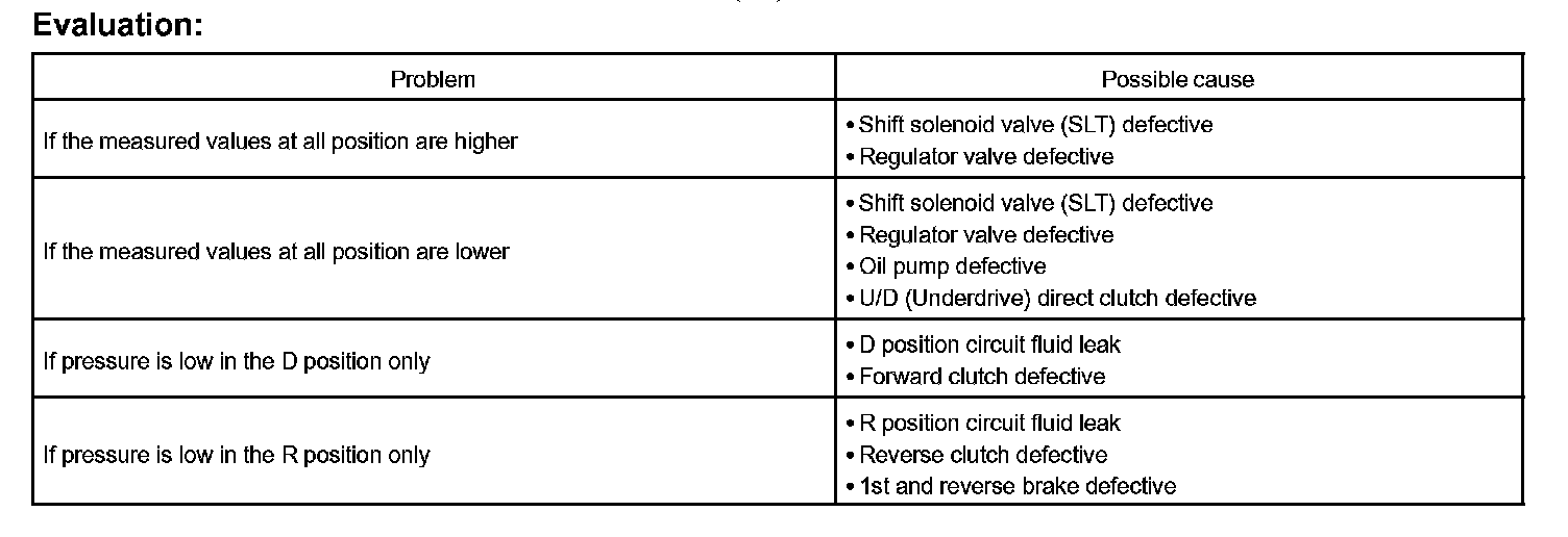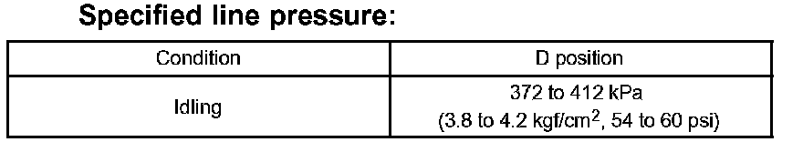 11. Firmly depress the brake pedal, shift to the D position, depress the accelerator pedal all the way down and check the line pressure while the stall test is performed.
