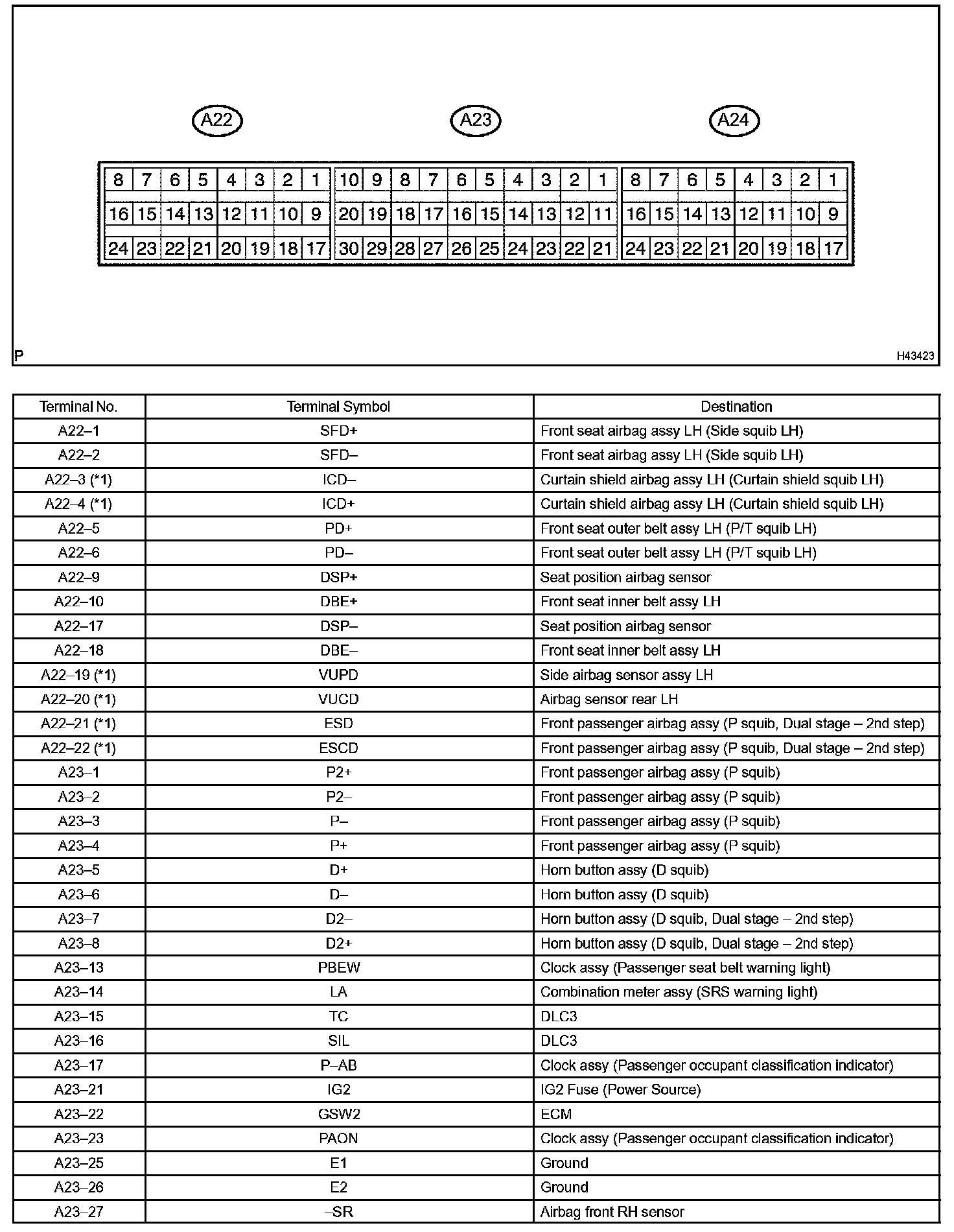 Terminals Of ECU/Pinouts - Airbag Sensor Assy Center Part 1: