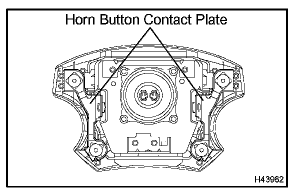 - If the horn button contact plate of the horn button assy is deformed, never repair it. Always replace the horn button assy with a new one.