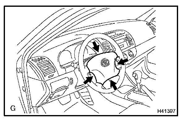 CAUTION: For removal and installation procedures of the horn button assy, see "Replacement" and be sure to follow the correct procedure.