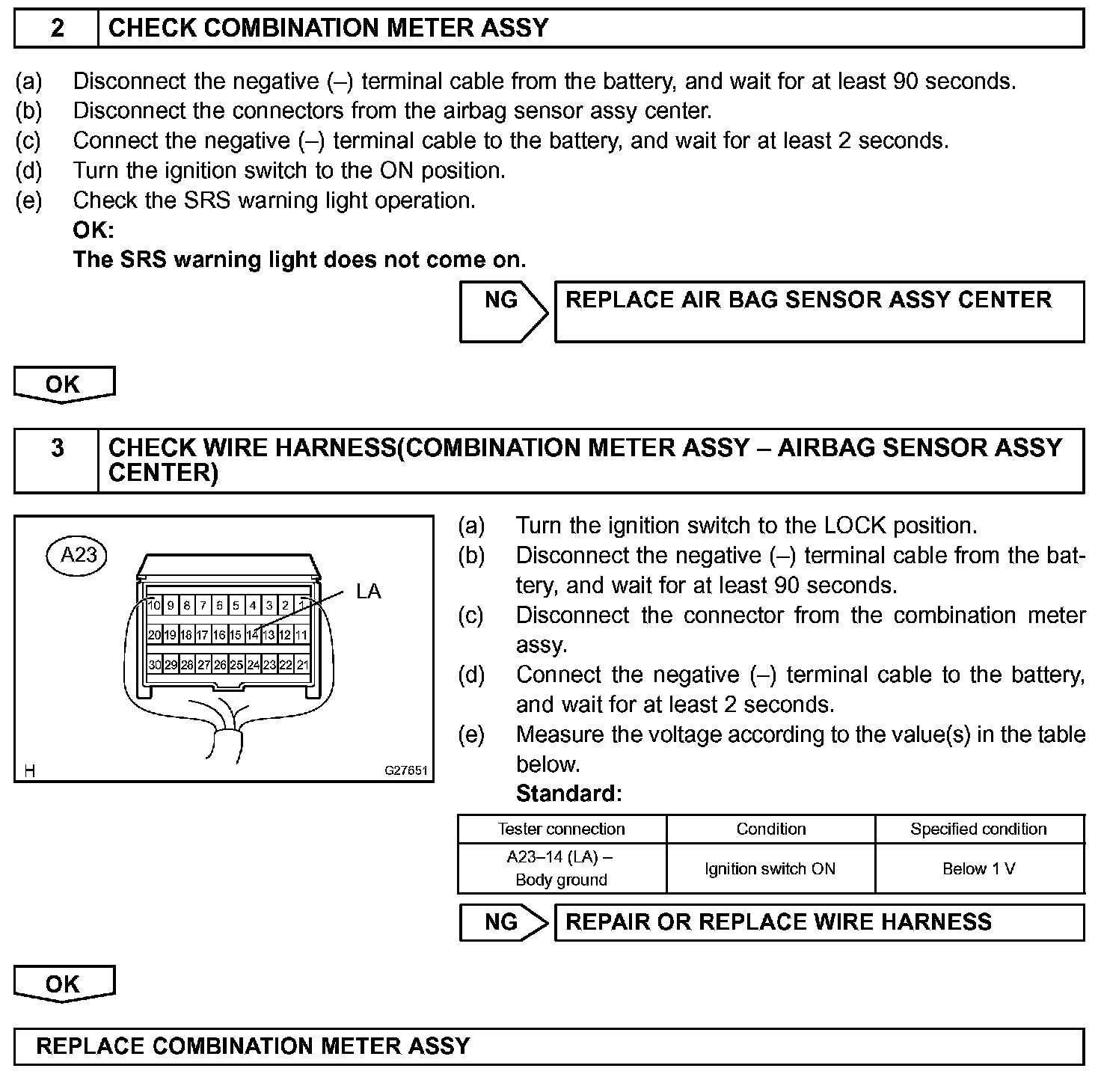 When terminals TC and CG of the DLC3 are connected, the DTC is displayed by blinking the SRS warning light.