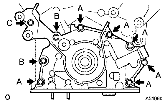 Timing belt plate x Oil pump assy 8.0 Nm (82 kgf-cm, 71 inch lbs.)