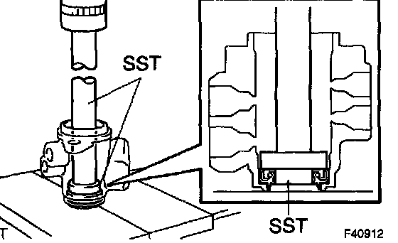 b. Using SST and a press, install the power steering control valve upper oil seal.