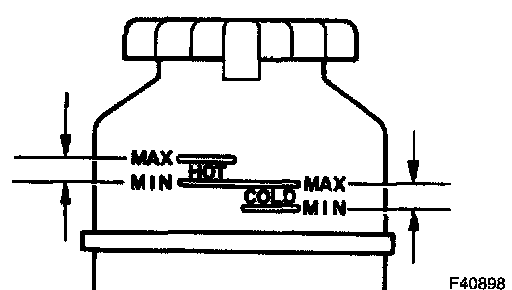 HINT: Check that the fluid level is within the HOT LEVEL range on the reservoir cap. If the fluid is cold, check that it is within the COLD LEVEL range.