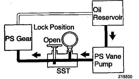 i. With the engine idling and valve fully opened, turn the steering wheel to full lock position.