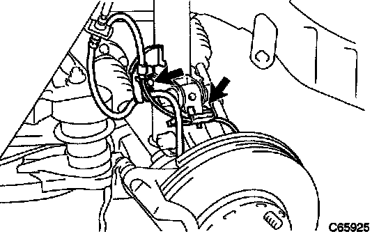 b. w/ ABS: Remove the bolt, disconnect the front flexible hose No. 1 and speed sensor front LH.