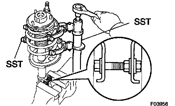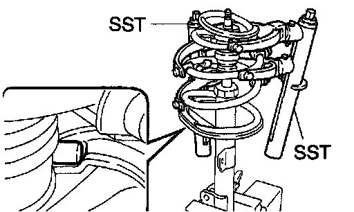 c. Using SST, compress the front coil spring LH.