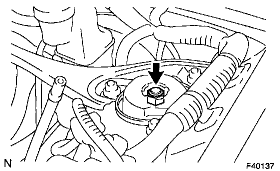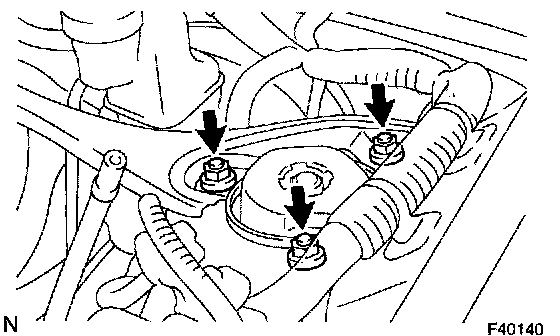 e. Remove the 3 nuts on the upper side of the front shock absorber with coil spring.