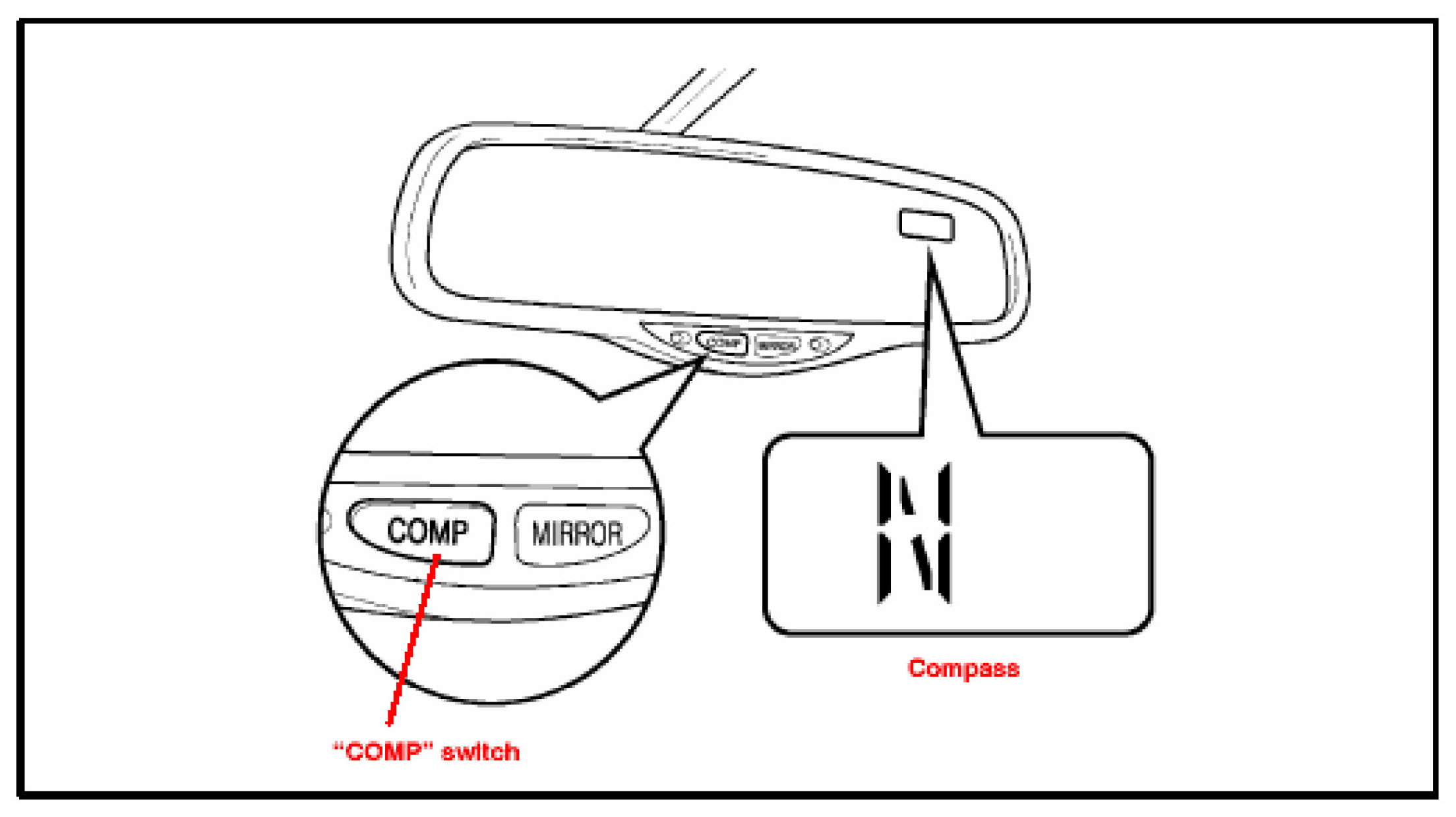 Some 2002 - 2006 model year Camry vehicles are equipped with a compass in the rear view mirror. Use the following procedure to complete initial calibration of the compass during the ROAD TEST section of Pre-Delivery Service (PDS).