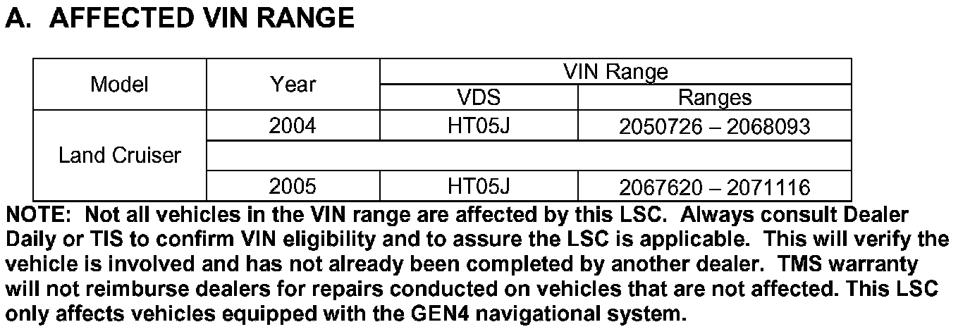 Identification of Affected Vehicles