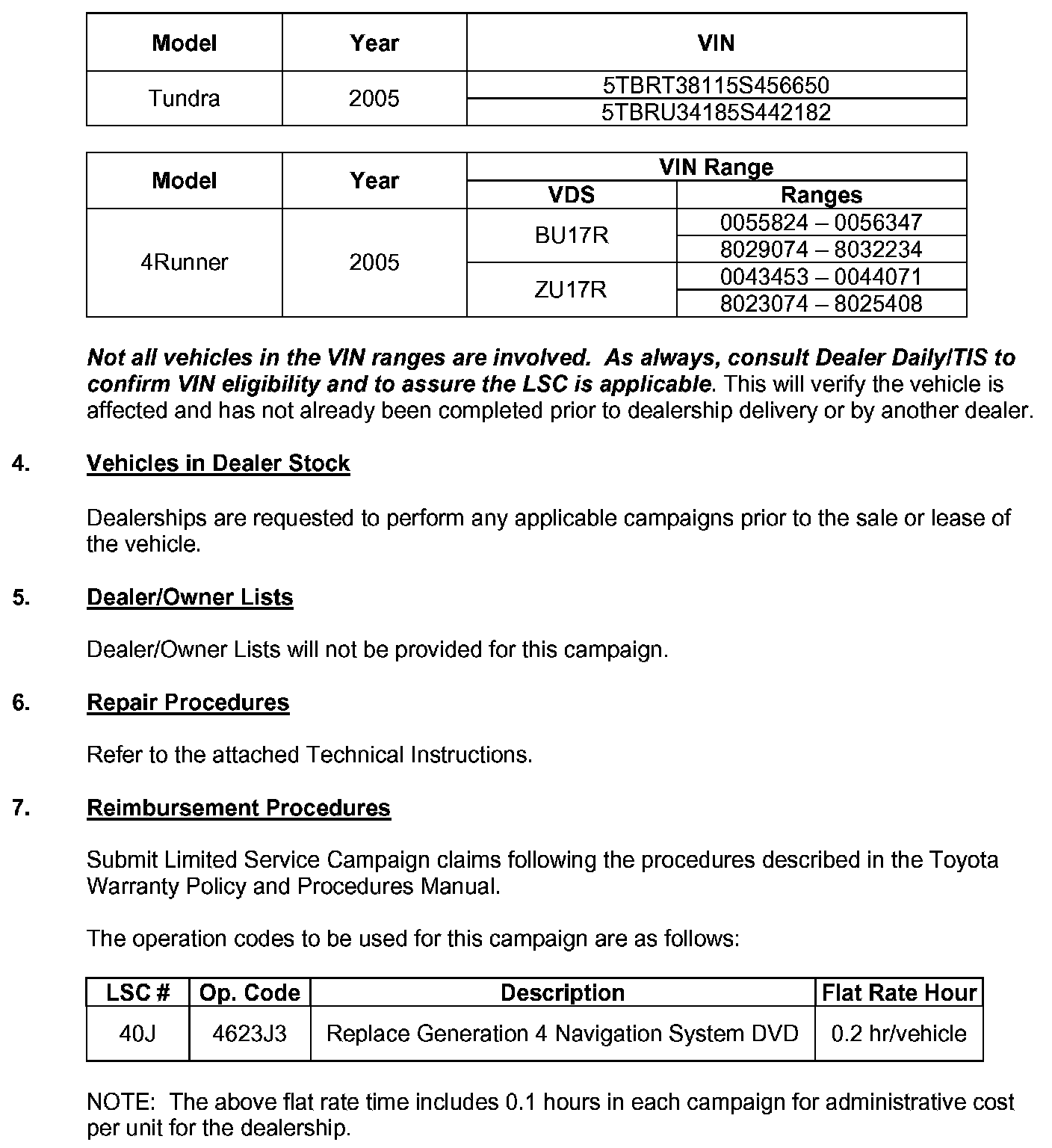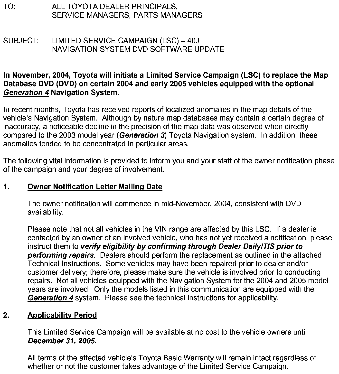Dealer Letter/Bulletin Information