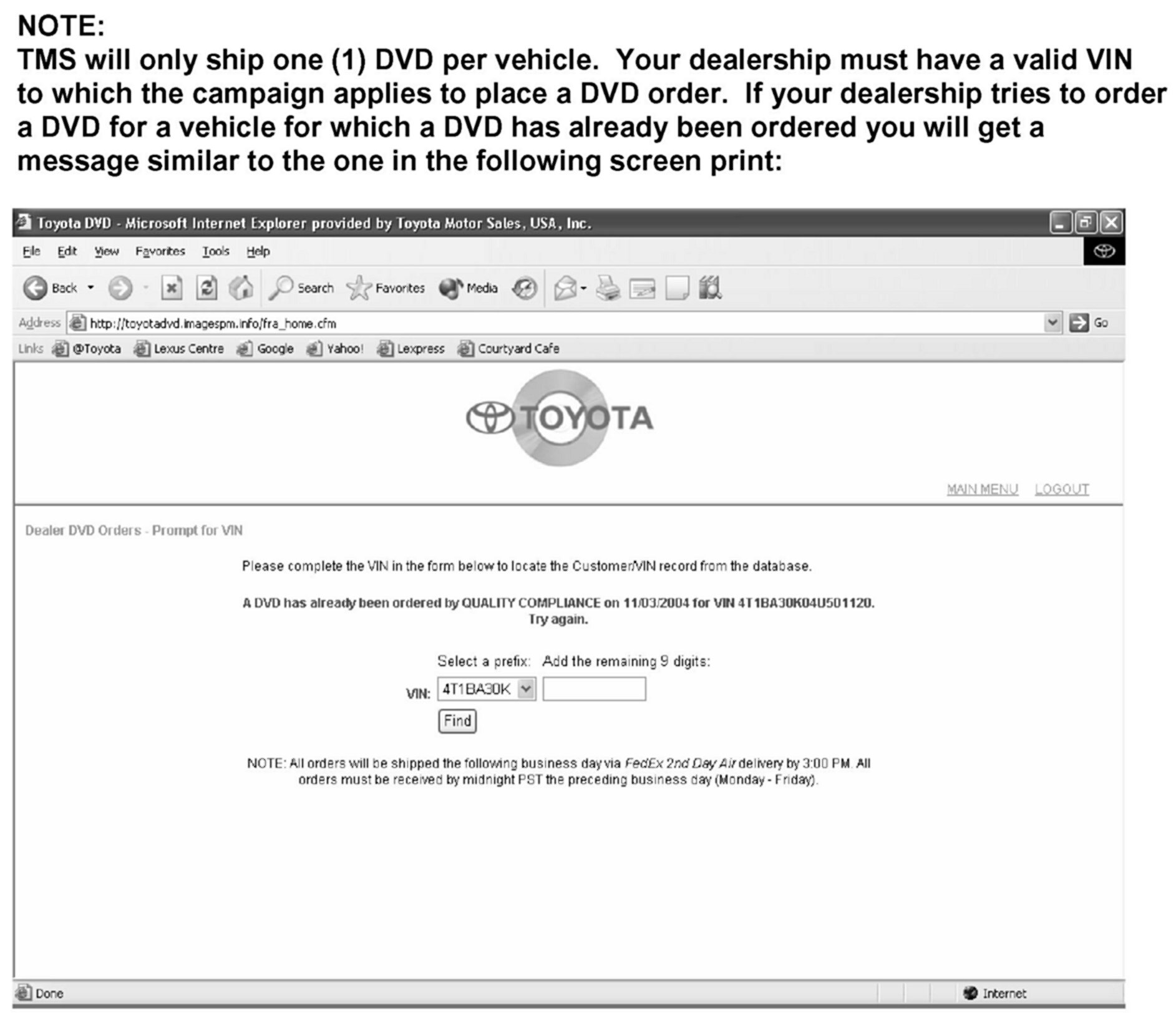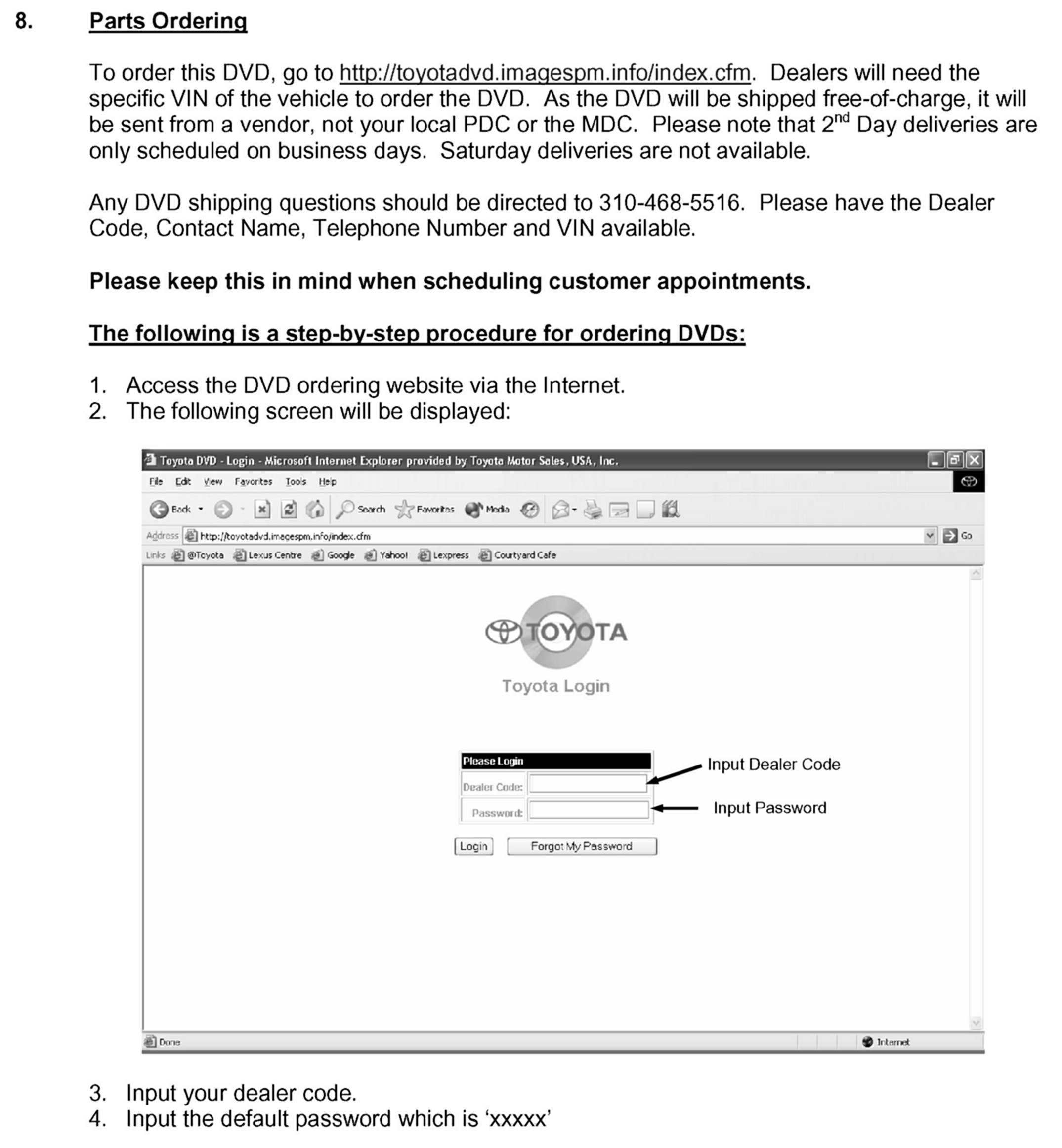 Parts Ordering/Step by Step Procedure for Ordering DVD's