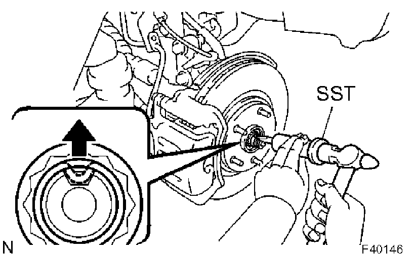 Therefore, if it is absolutely necessary to place the vehicle's weight on the hub bearing, first support it with SST.