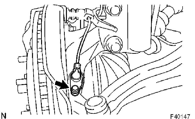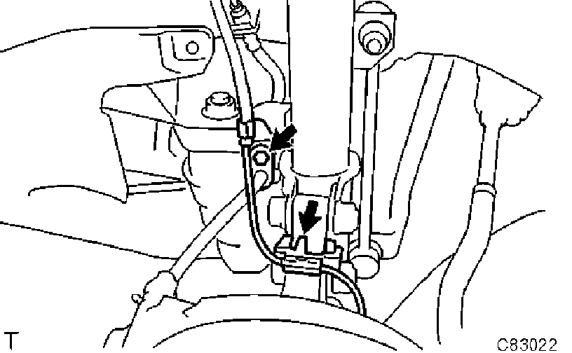 b) Install the flexible hose and the speed sensor to the shock absorber with the bolt and set the sensor clip on the knuckle.