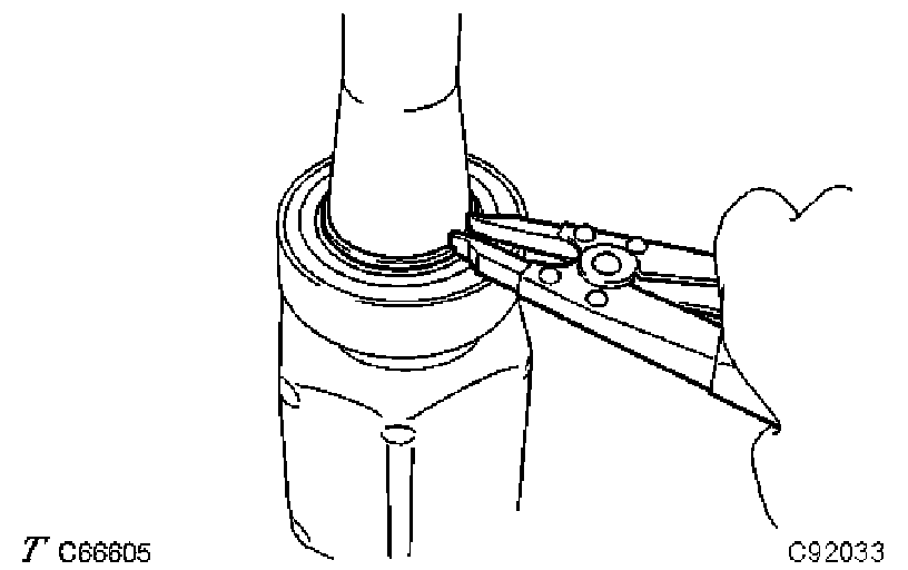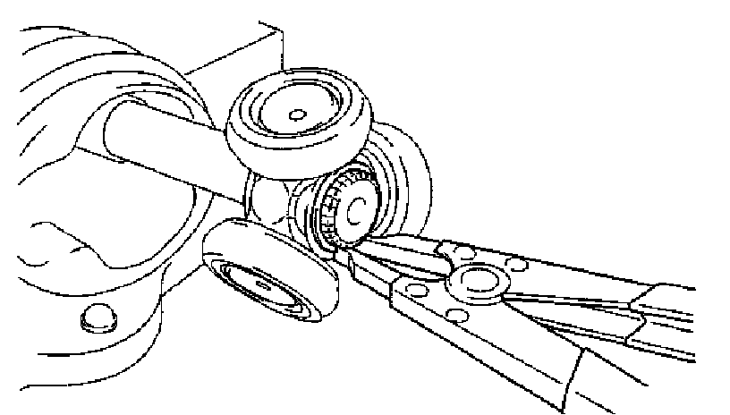 e) Using a snap ring expander, install a new shaft snap ring.