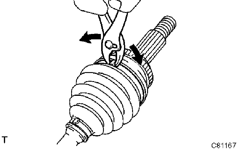 a) Remove the inboard joint boot LH clamp, as shown in the illustration.