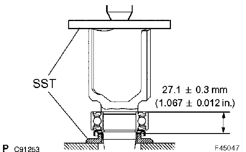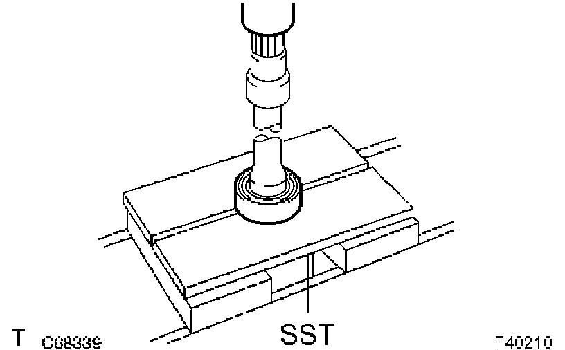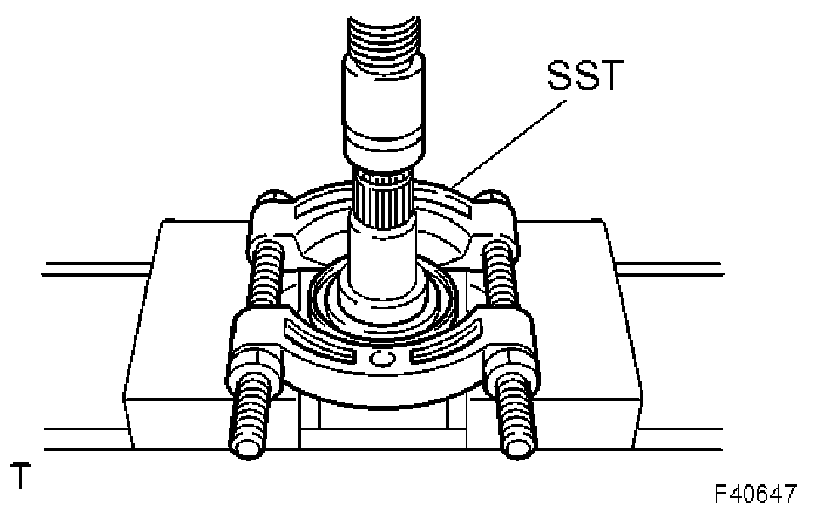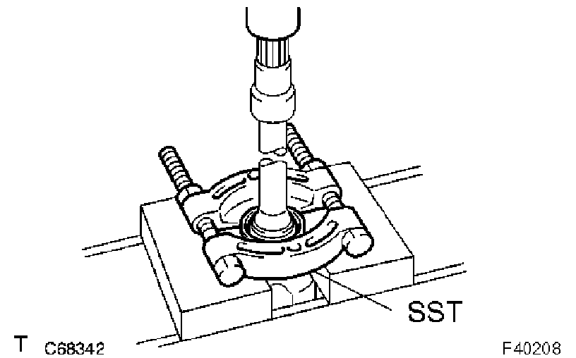 b) Using SST and a press, remove the bearing.