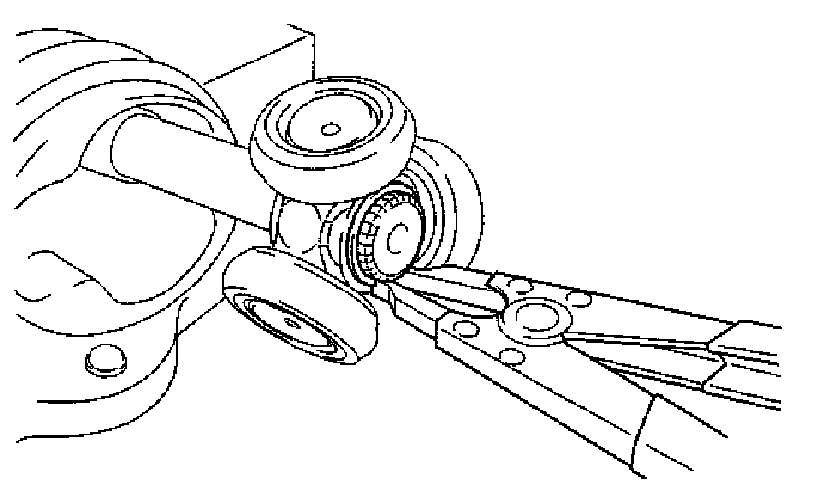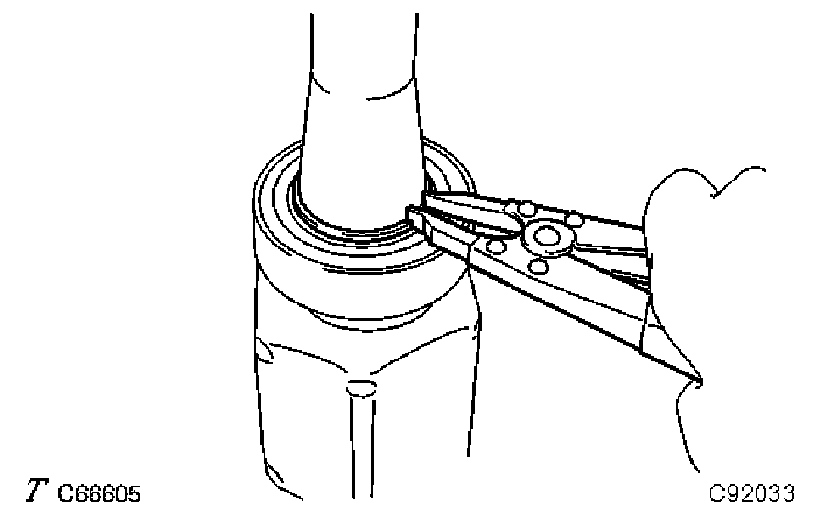 c) Using a snap ring expander, remove the shaft snap ring.