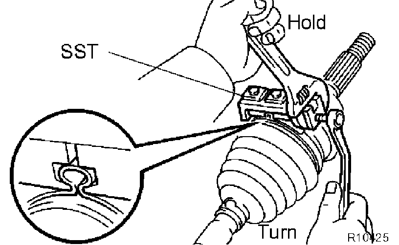 3) Place SST onto the inboard joint boot LH clamp.