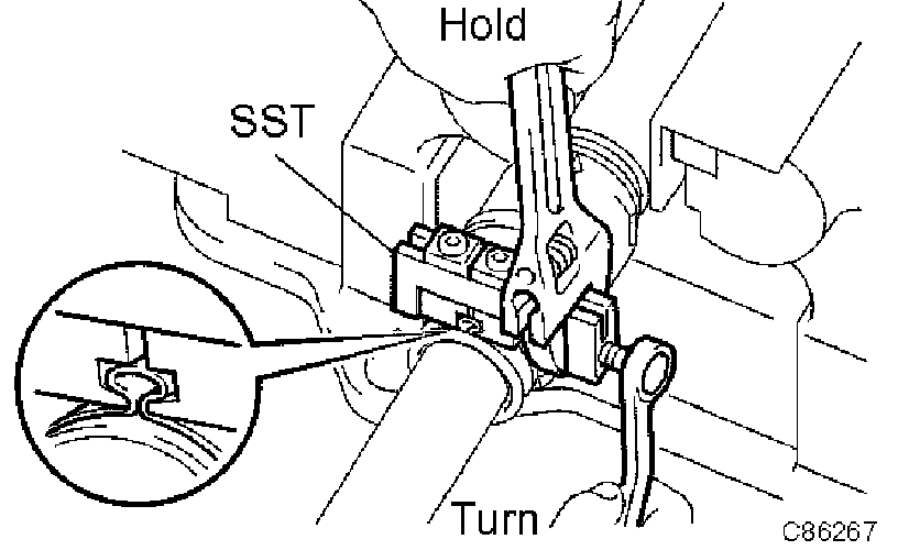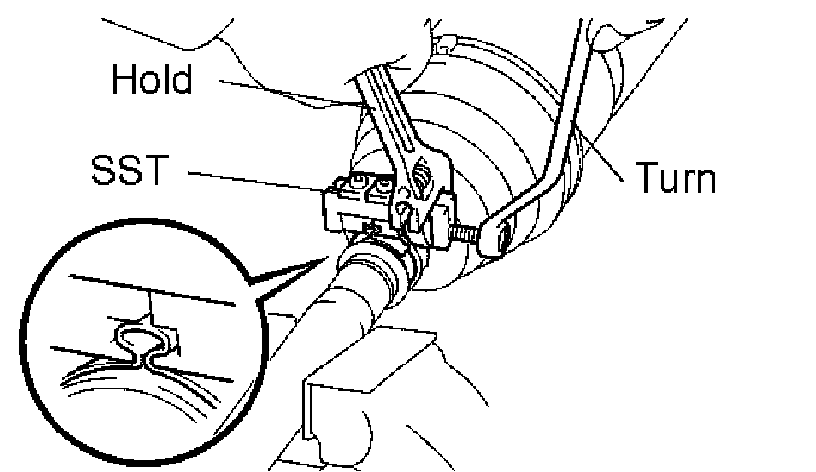 4) Tighten the SST so that the inboard joint boot LH clamp is pinched.