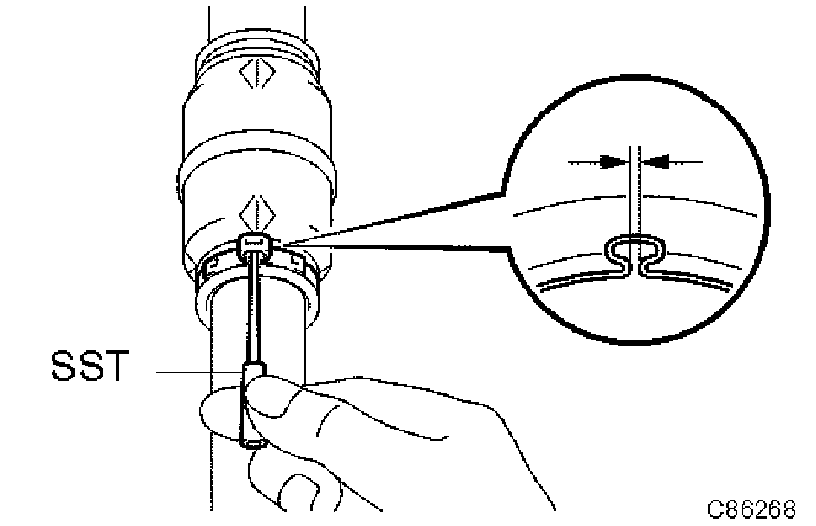 h) Using SST, measure the clearance of the drive shaft damper clamp.