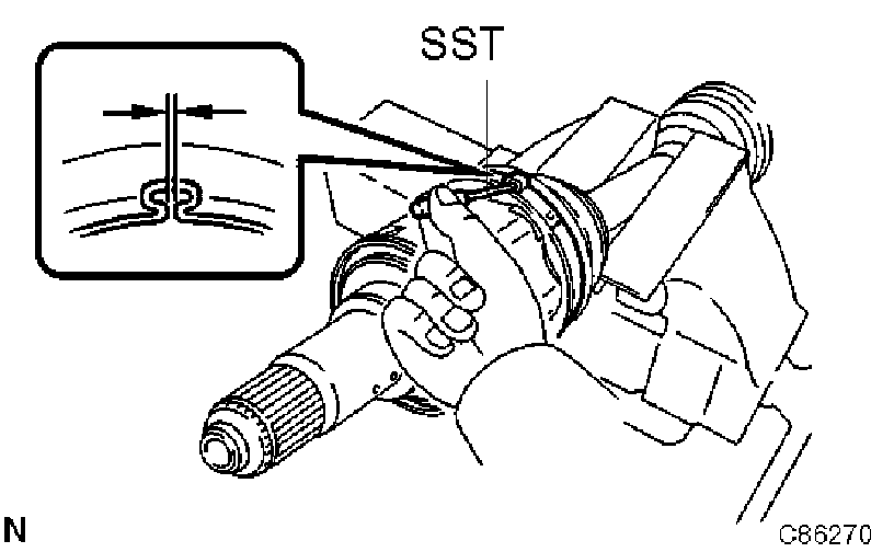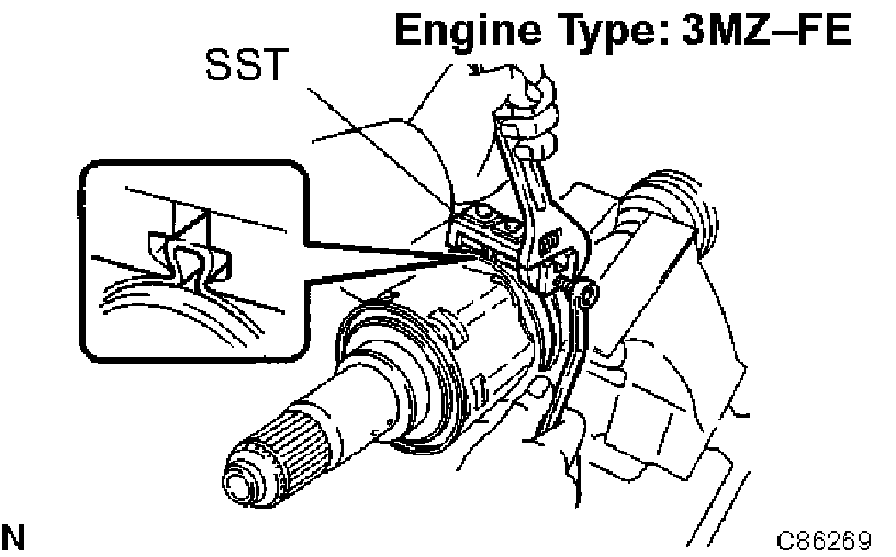 3) Place SST onto the inboard joint boot LH No.2 clamp.