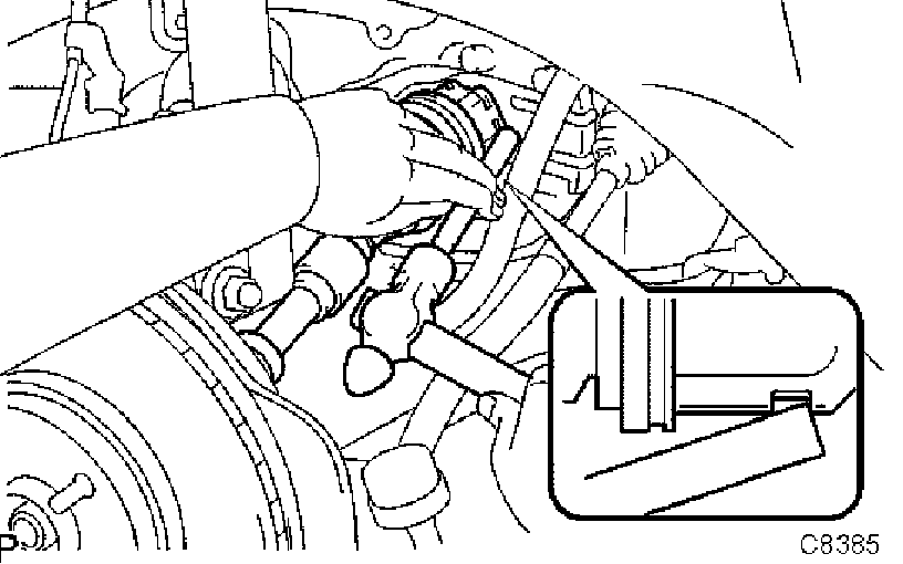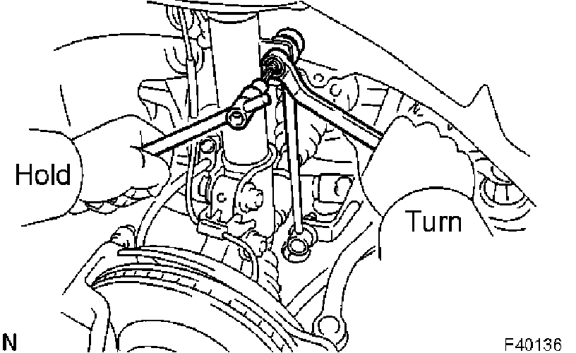 HINT: If the ball joint turns together with the nut, use a hexagon (6 mm) wrench to hold the stud.