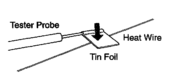 NOTE: When cleaning the glass, use a soft, dry cloth, and wiper the glass in the direction of the wire. Take care not to damage the wires. Do not use detergents or glass cleaners with abrasive ingredients. When measuring voltage, wind a piece of tin foil around the top of the negative probe and press the foil against the wire with your finger, as shown in the illustration.