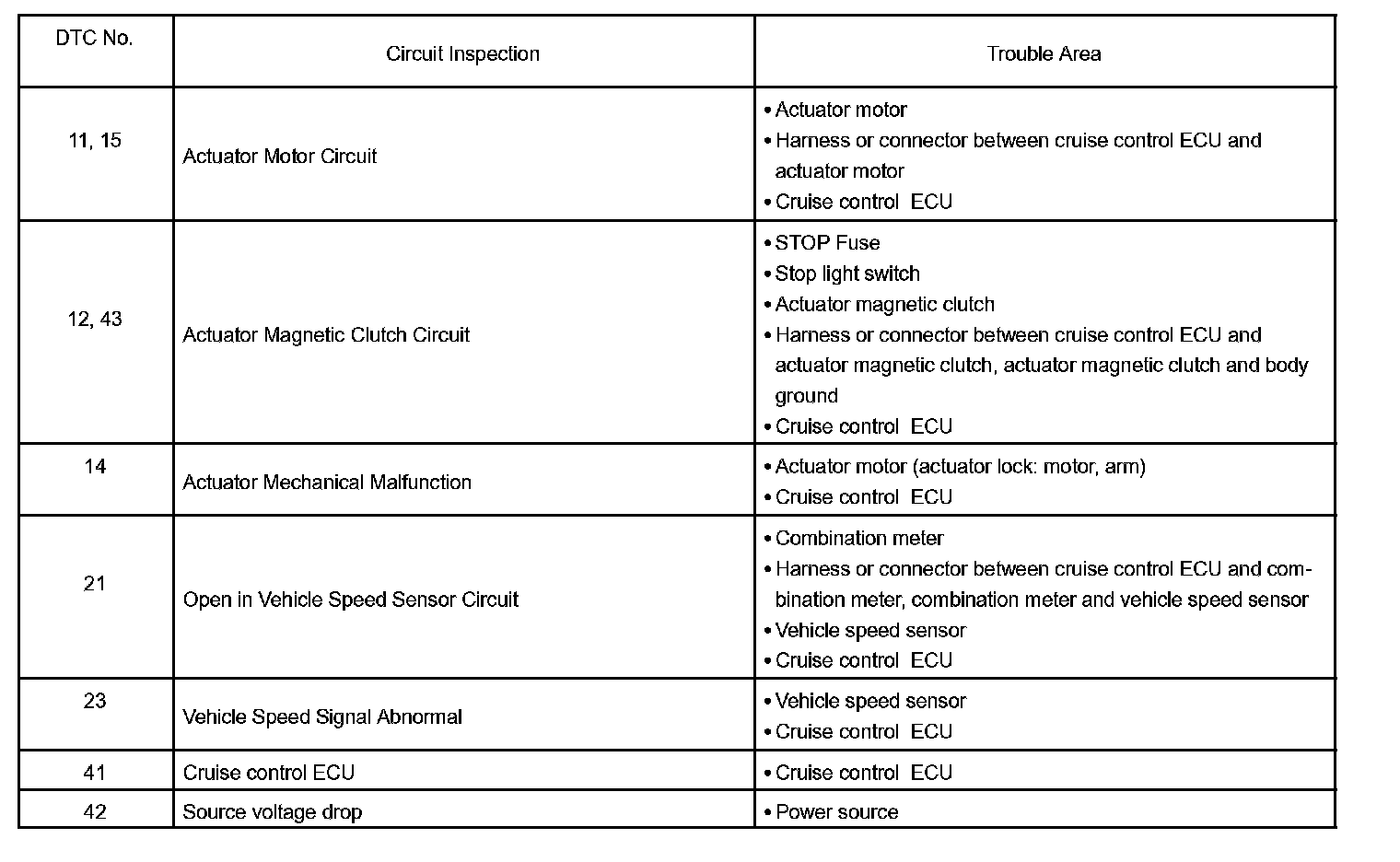 If a malfunction code is displayed during the DTC check, check the circuit listed for that code in the table and proceed to the appropriate troubleshooting.