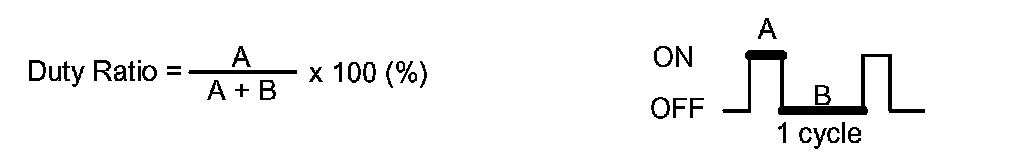 The duty ratio is the ratio of the period of continuity in one cycle. For example, if A is the period of continuity in one cycle, B is the period of non-continuity.