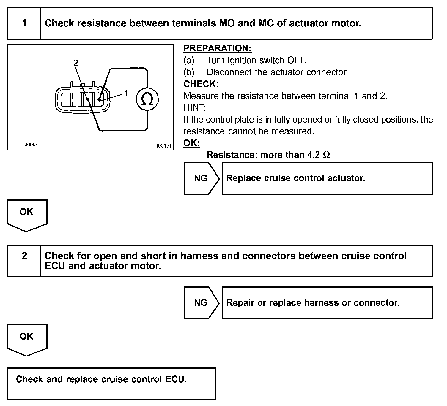 The actuator motor is operated by signals from the ECU. Acceleration and deceleration signals are transmitted according to the changes in the Duty Ratio.