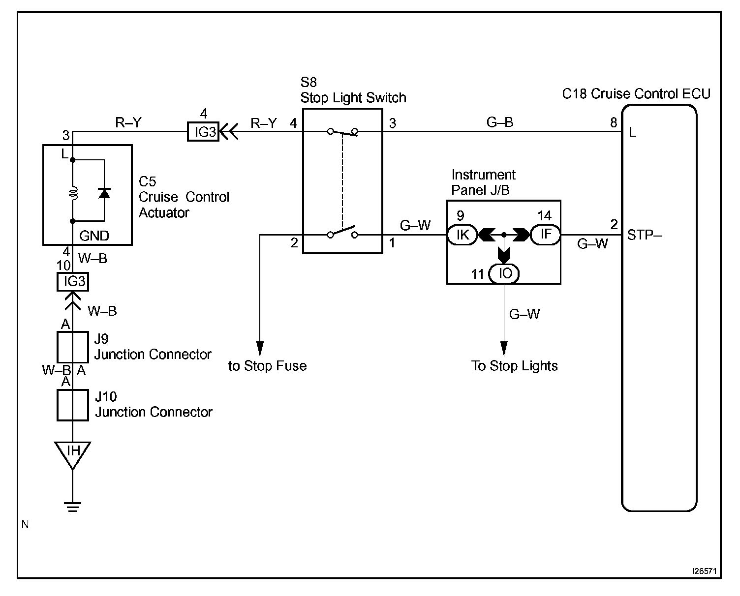 When the brake pedal is depressed, the stop light switch is turned on and the power supply to the magnetic clutch is mechanically cut, and therefore the magnetic clutch is turned OFF.