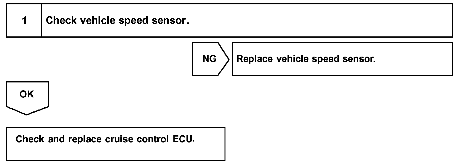 The signal from the vehicle speed sensor circuit is sent to the cruise control ECU as a vehicle speed signal. The rotor shaft is driven by the gear of the transmission.
