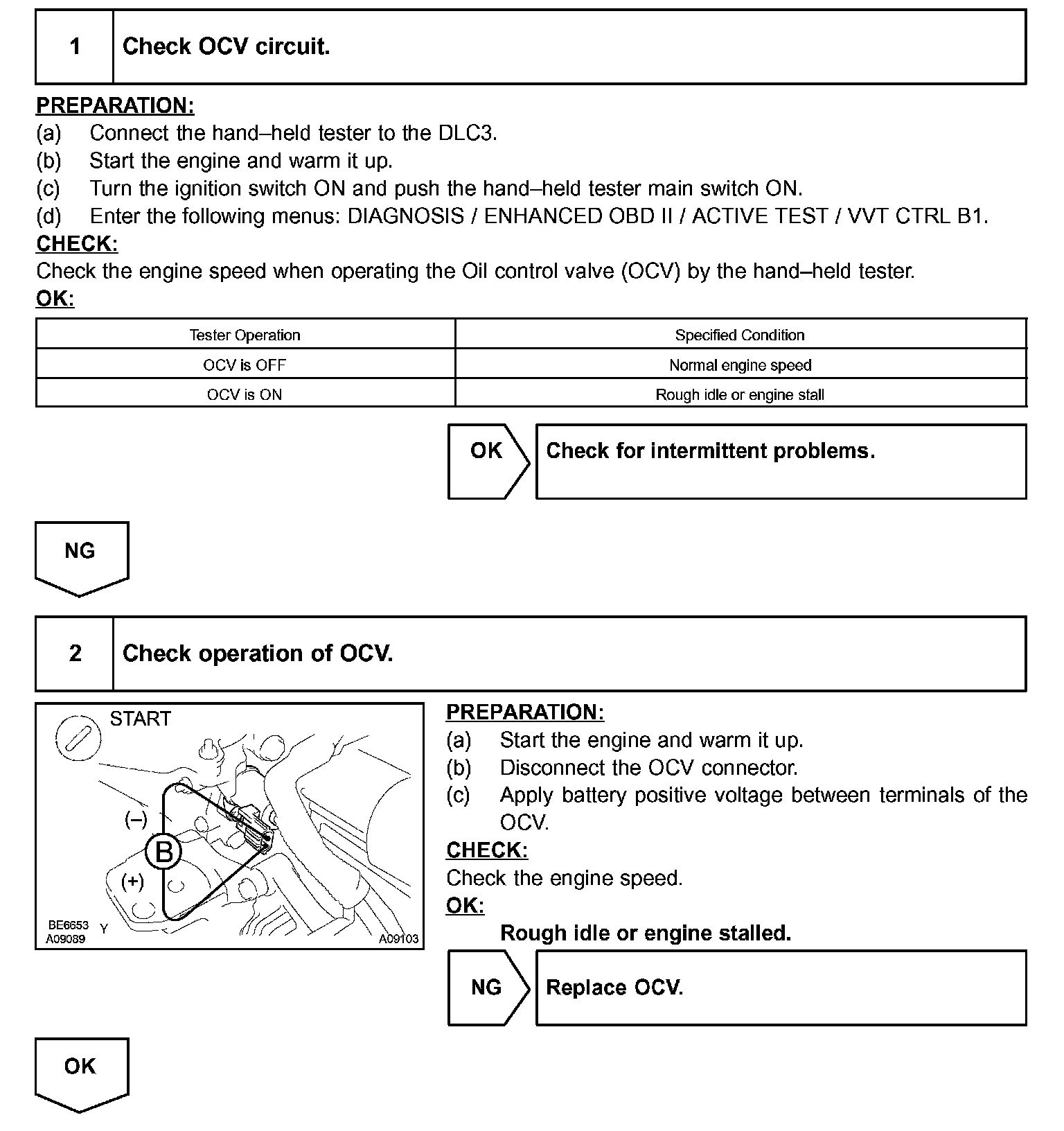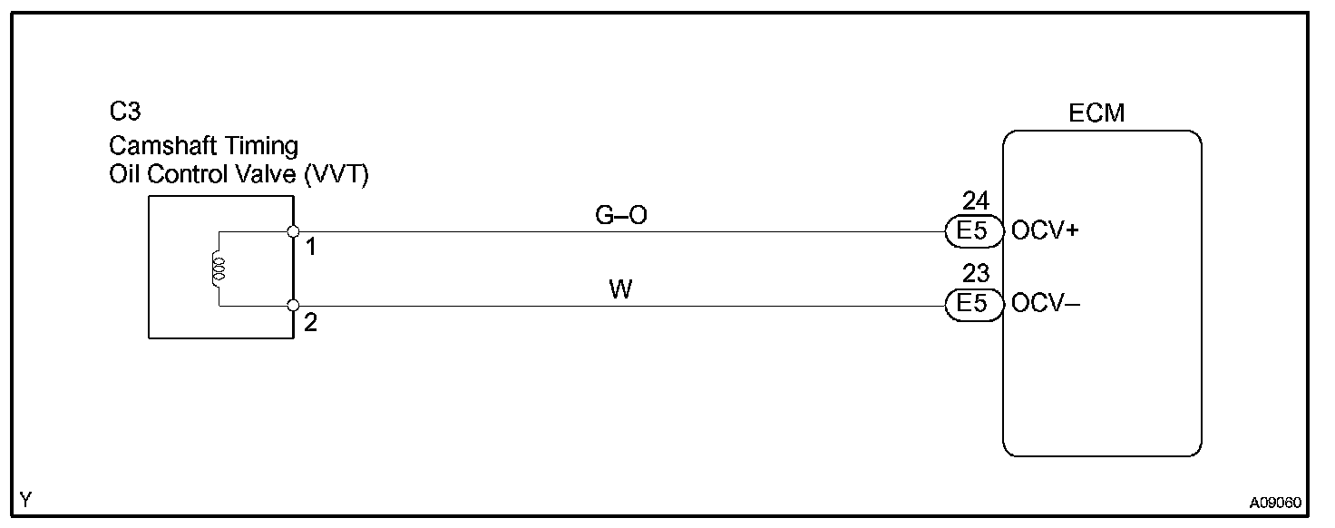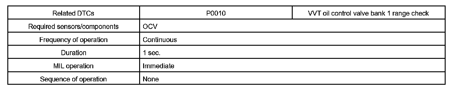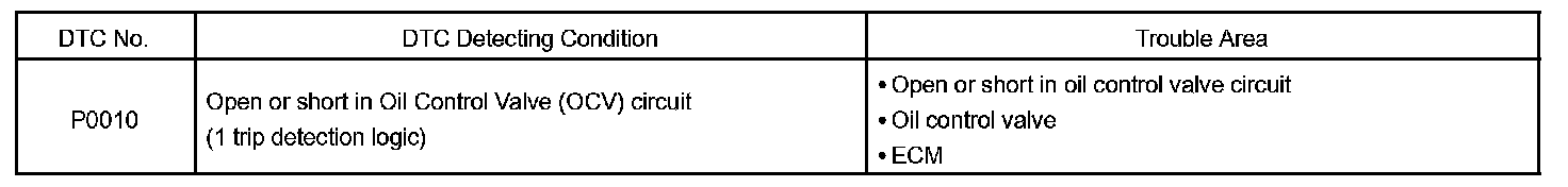 After the ECM sends the "target" duty-cycle signal to the OCV (Oil Control Valve), the ECM monitors the OCV current to establish an "actual" duty-cycle. When the actual duty-cycle ratio varies from the forget duty-cycle ratio, the ECM sets a DTC.