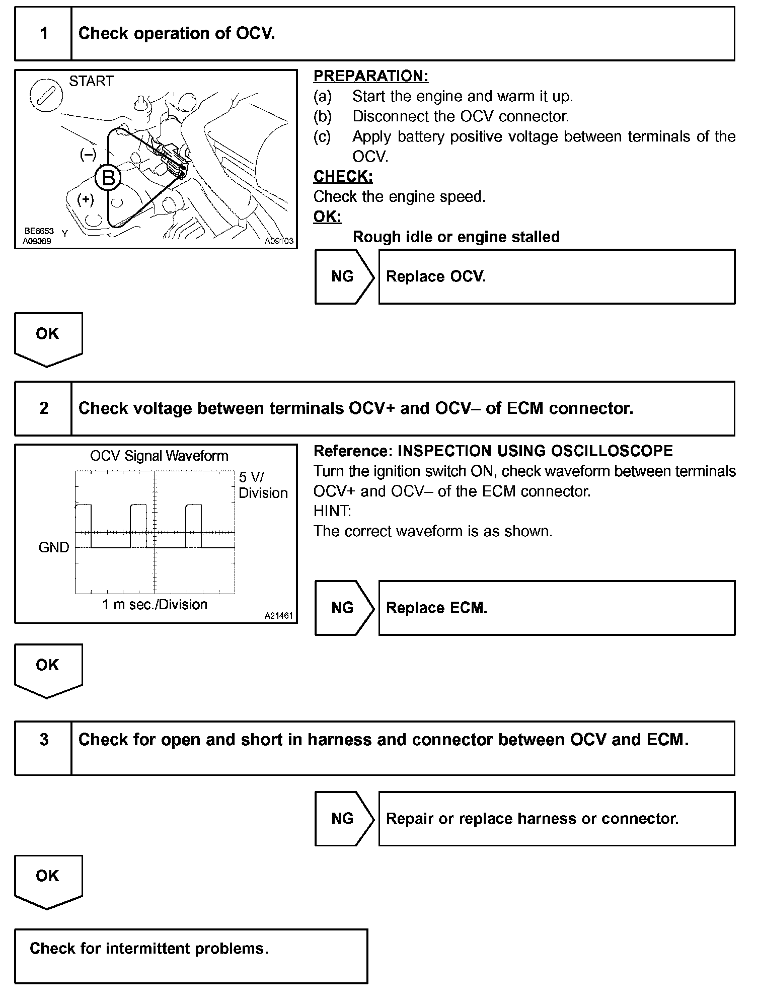 CHECK FOR INTERMITTENT PROBLEMS