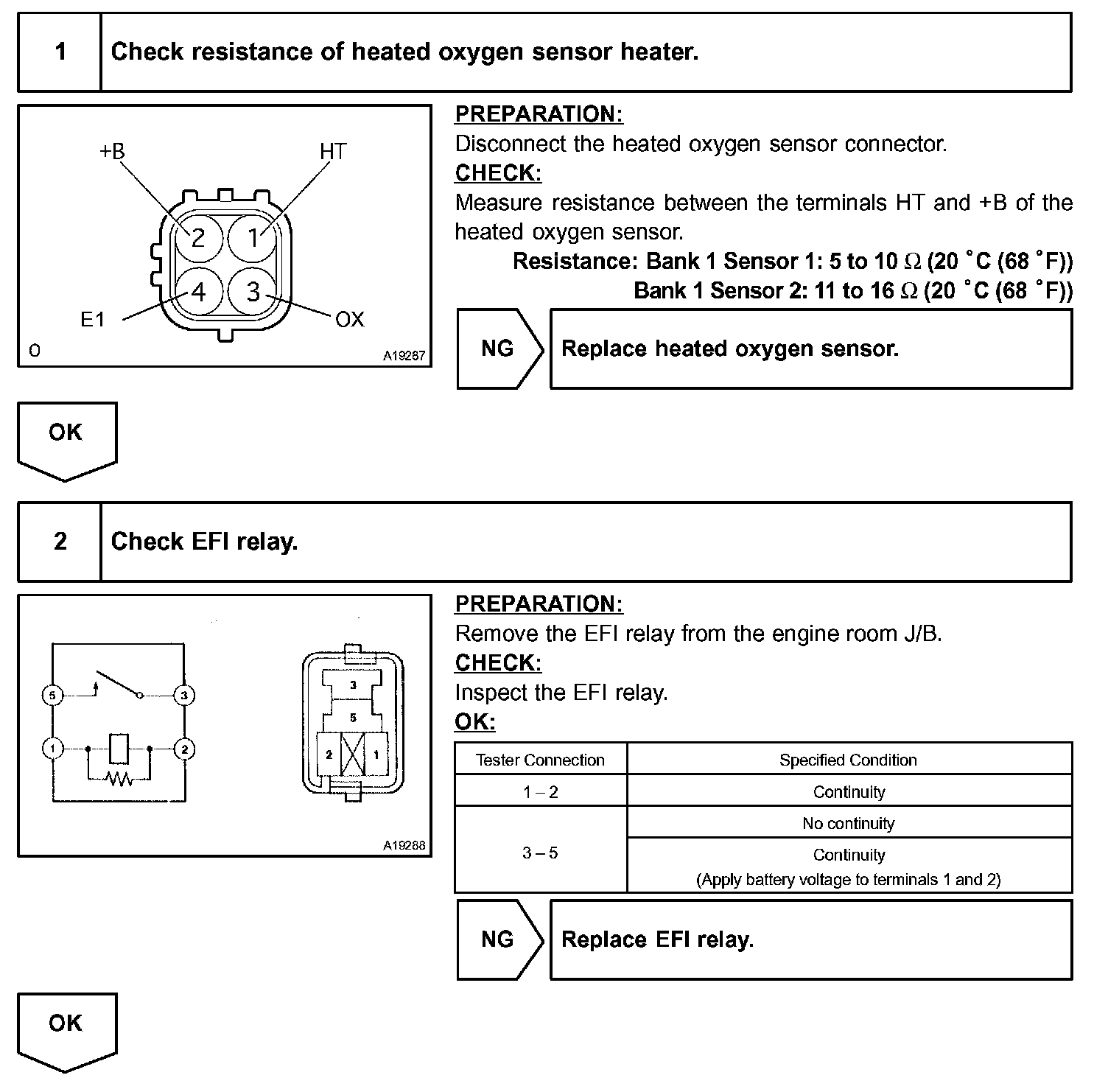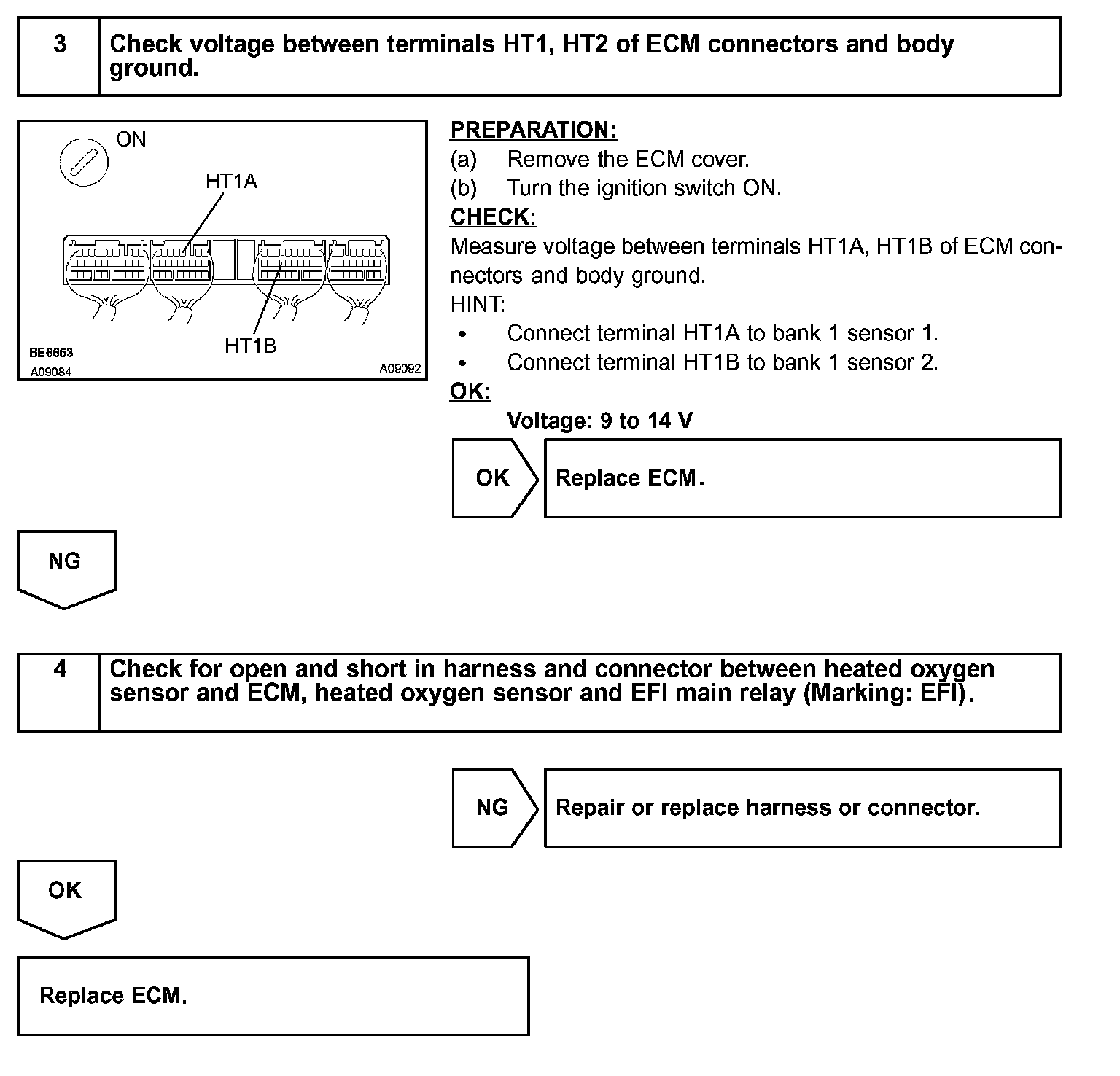 When the air fuel ratio becomes LEAN, the oxygen concentration in the exhaust gas increases. And the heated oxygen sensor informs the ECM of the LEAN condition (low voltage, i.e. less than 0.45 V).