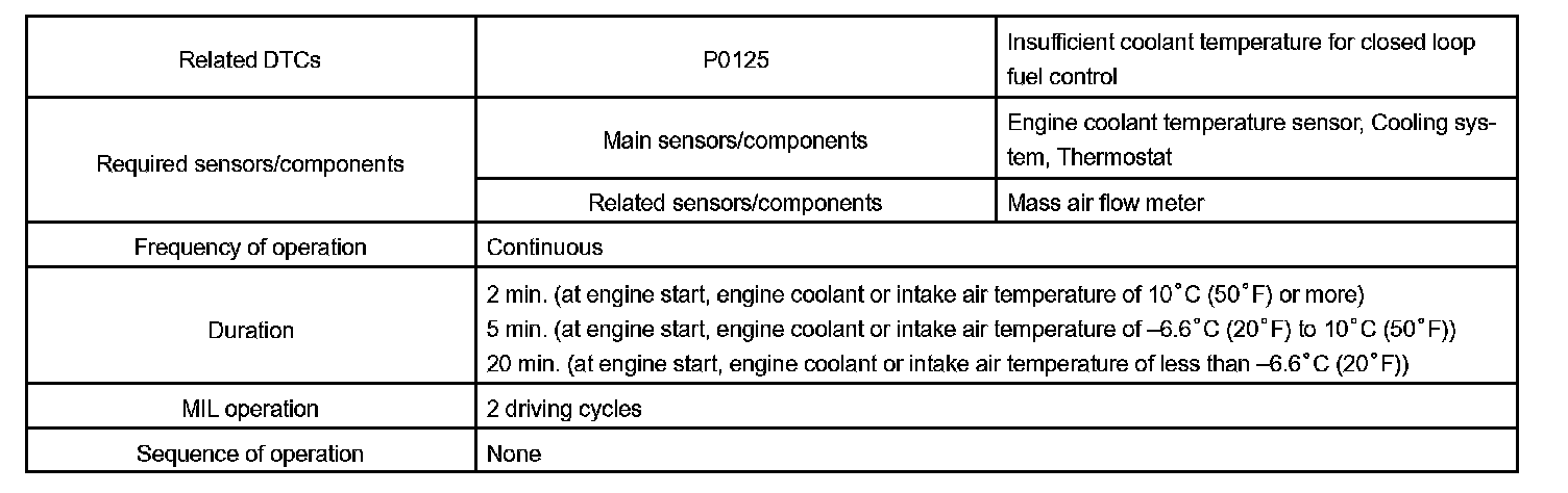 DTC P0125 INSUFFICIENT COOLANT TEMPERATURE FOR CLOSED LOOP FUEL CONTROLCIRCUIT DESCRIPTION
