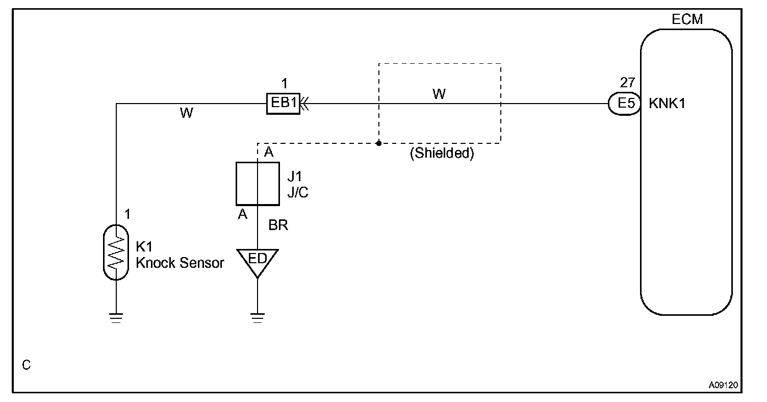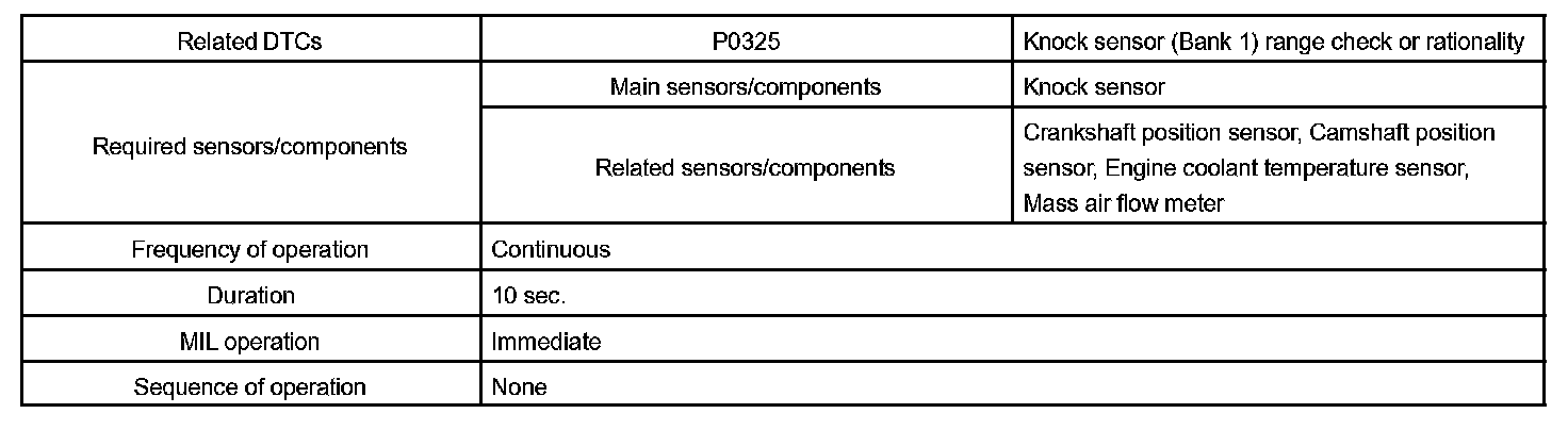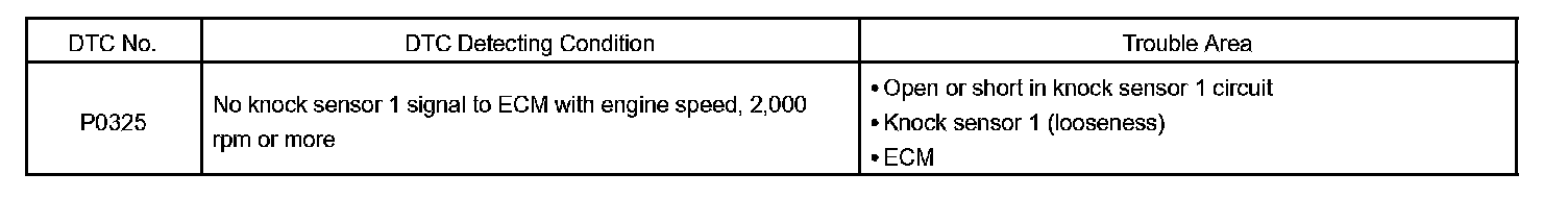 DTC P0325 KNOCK SENSOR 1 CIRCUIT (BANK 1 OR SINGLE SENSOR)CIRCUIT DESCRIPTION