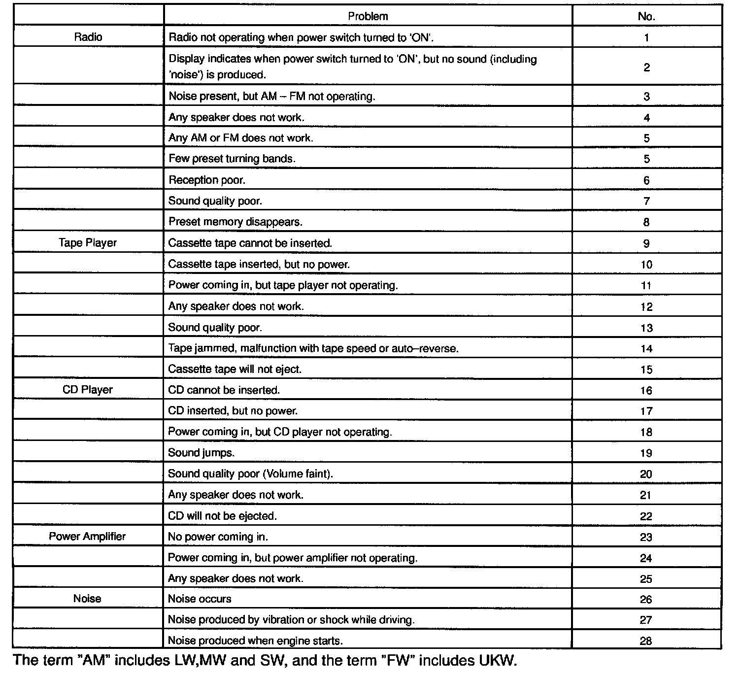 TROUBLESHOOTINGNOTE: When replacing the internal mechanism (computer part) of the audio system, be careful that no part of your body or clothing comes in contact with the terminals of the leads from the IC, etc. of the replacement part (spare part).