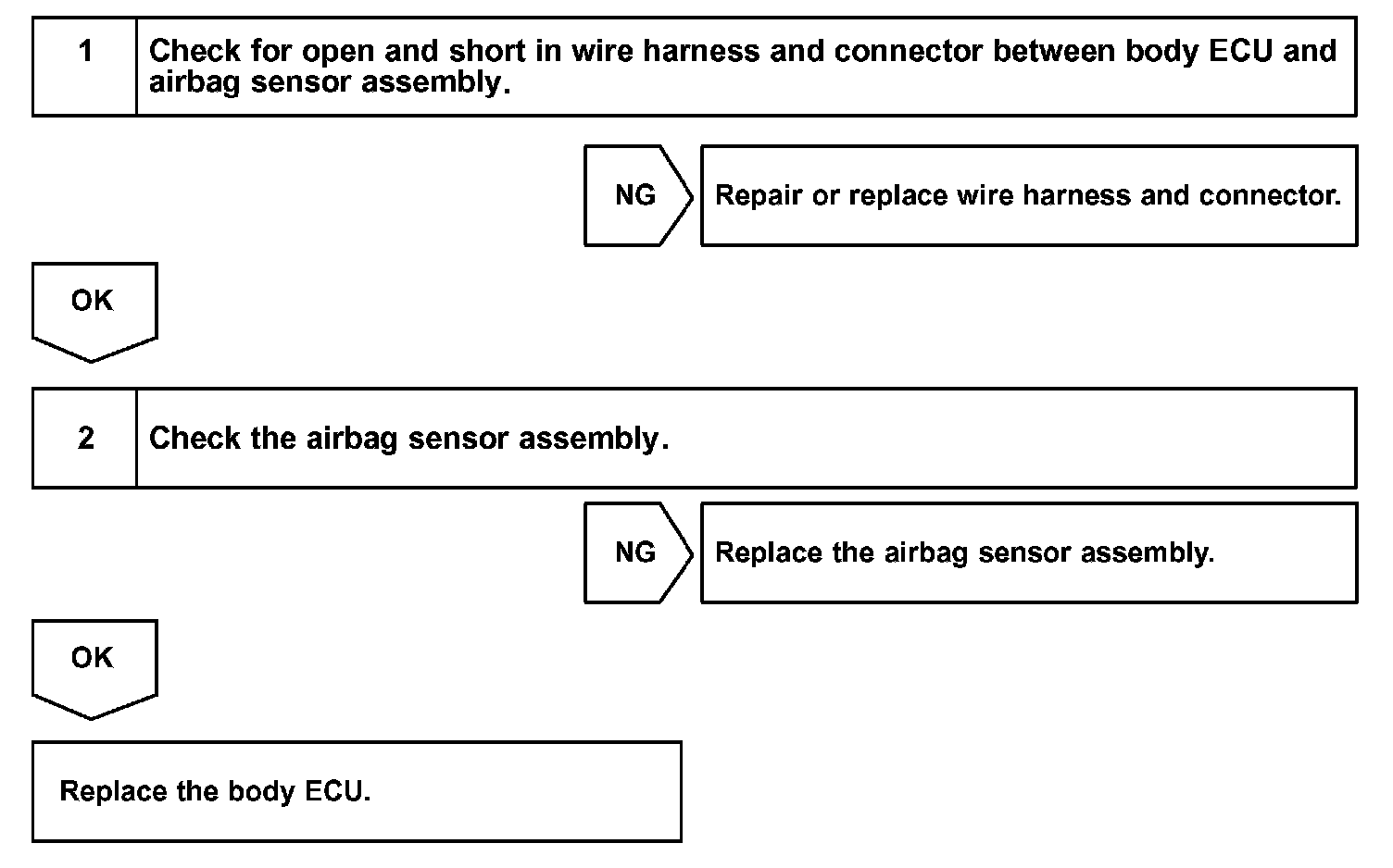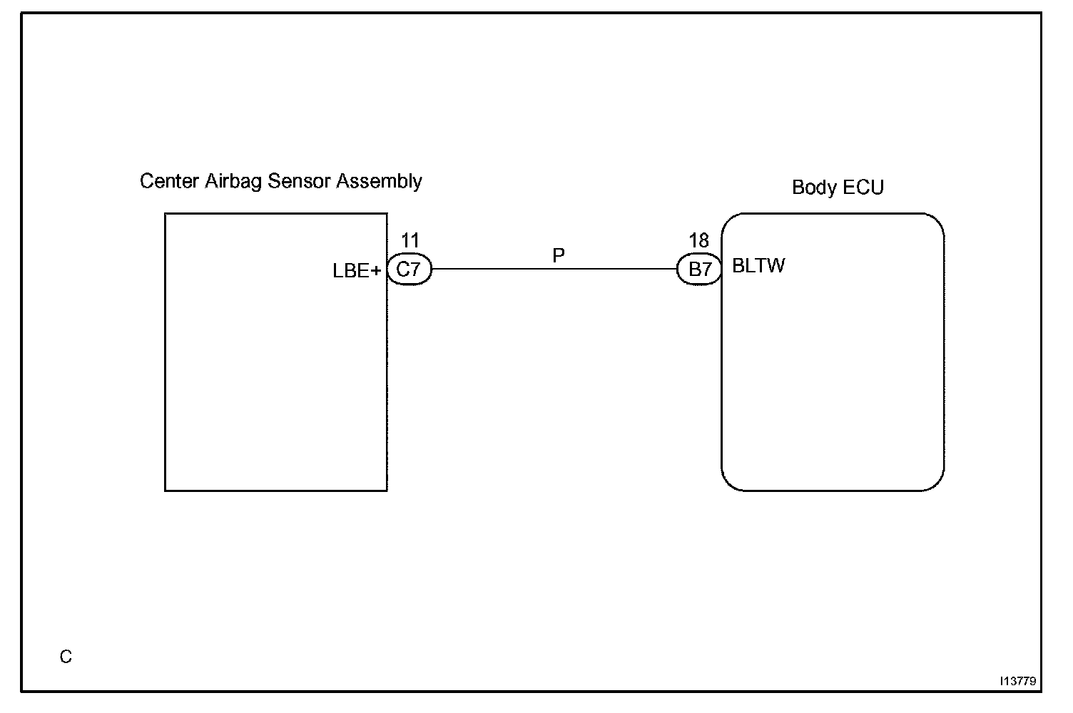 Signals received at the body ECU, such as the passenger seat occupant detection sensor signal, are transmitted to the airbag sensor assembly.