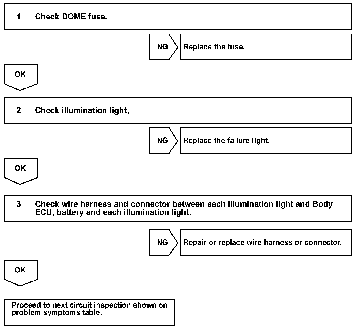 Receiving the courtesy signal from the Body ECU will make the interior light, the ignition light and the courtesy light to come on.