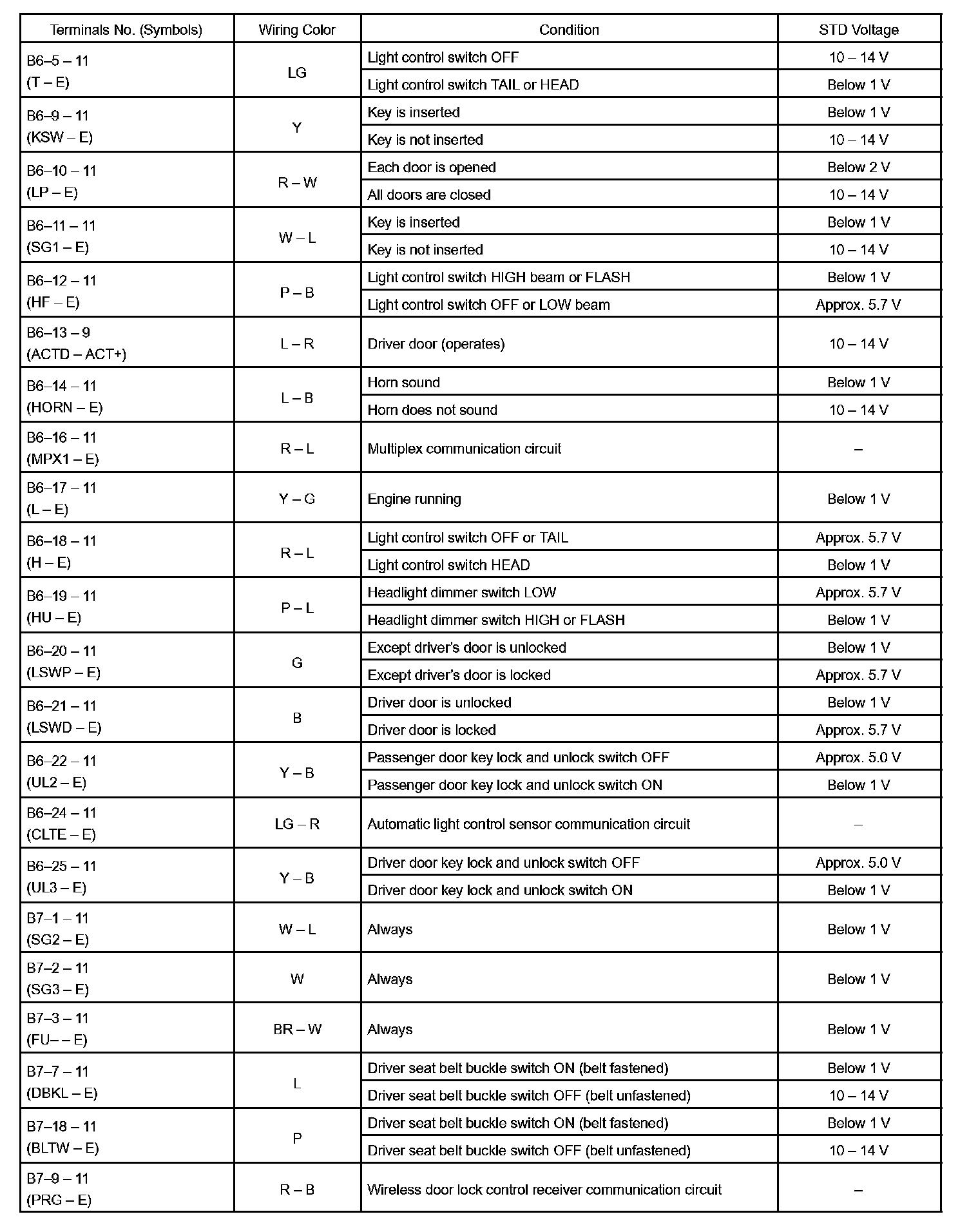 Pinout Values and Diagnostic Parameters