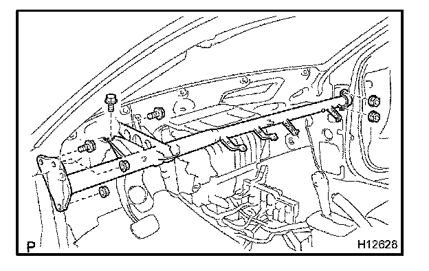 b. Remove the 3 bolts, 4 nuts and reinforcement.