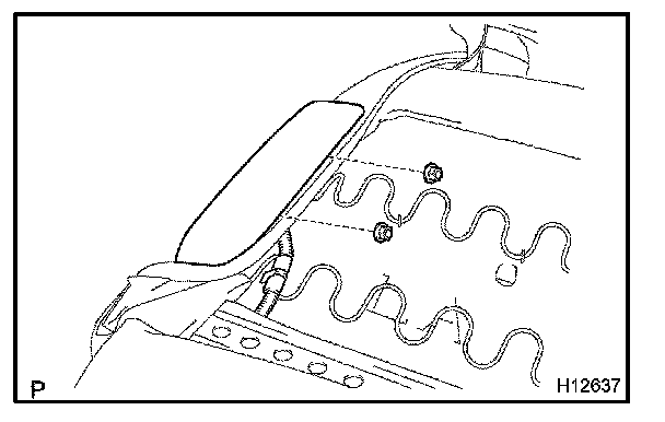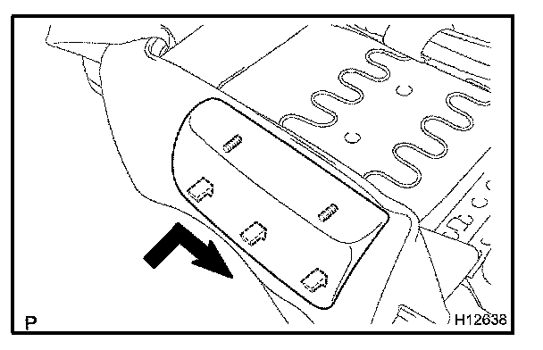 Remove the front seat cushion shield as shown in the illustration.