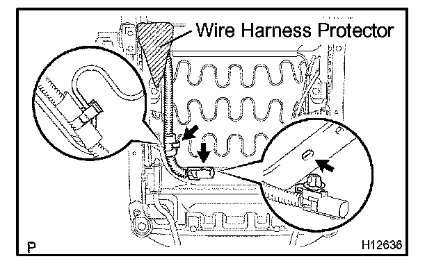 Replace the wire harness protector as shown in the illustration.