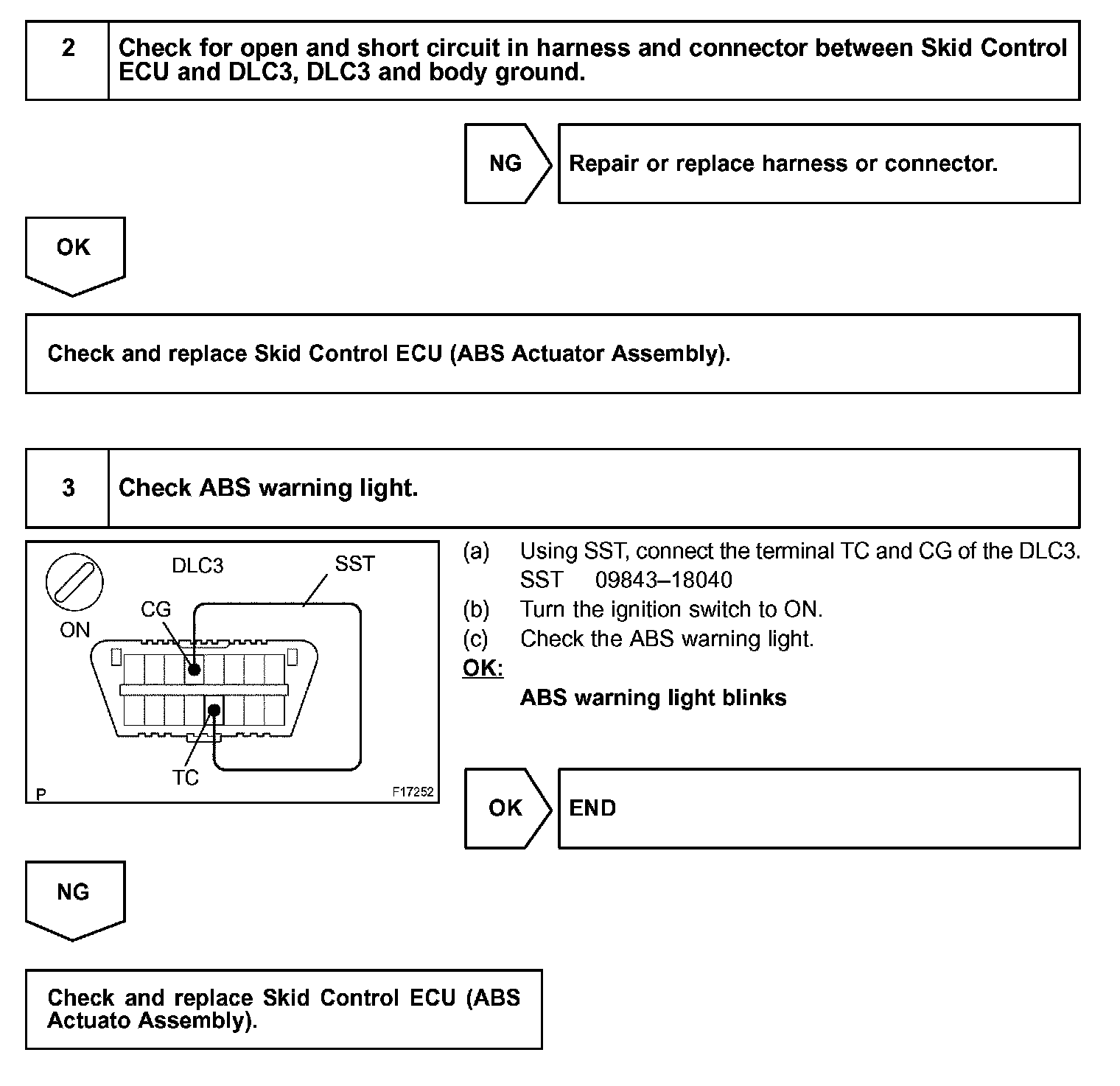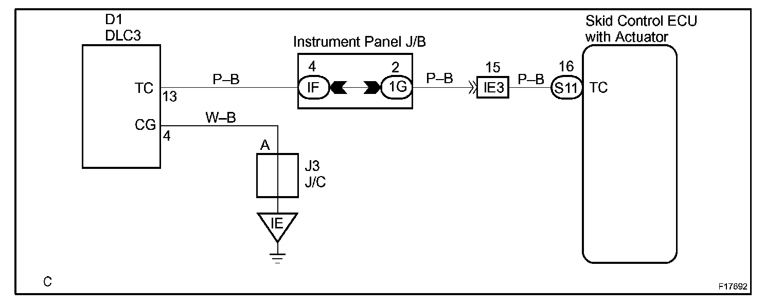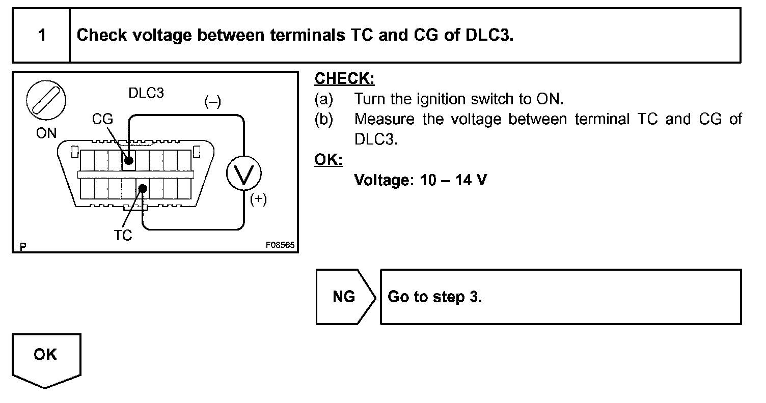 Connecting between terminal TC and CG of the DLC3 causes the ECU to display DTC by flashing the ABS warning light.